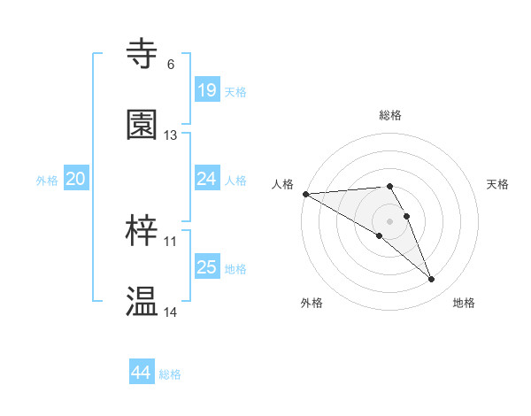 寺園 梓温さんを姓名の画数から五運を鑑定