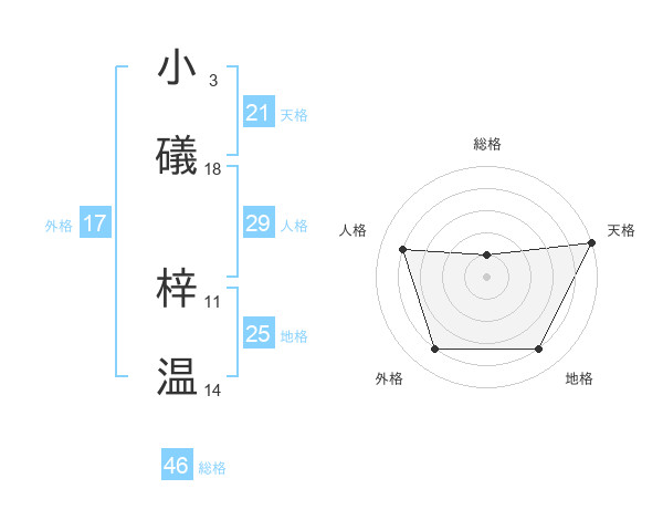小礒 梓温さんを姓名の画数から五運を鑑定