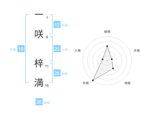 一咲 梓満さんを姓名の画数から五運を鑑定