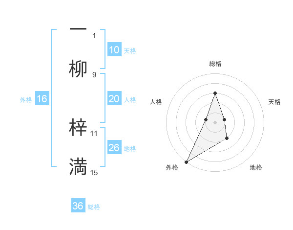 一柳 梓満さんを姓名の画数から五運を鑑定