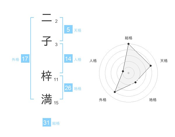 二子 梓満さんの総格は31画の5点!