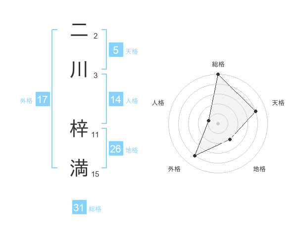 二川 梓満さんの天格は5画の4点!