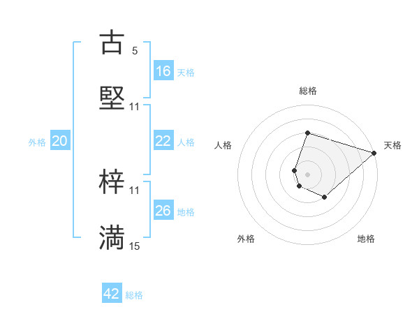古堅 梓満さんを姓名の画数から五運を鑑定