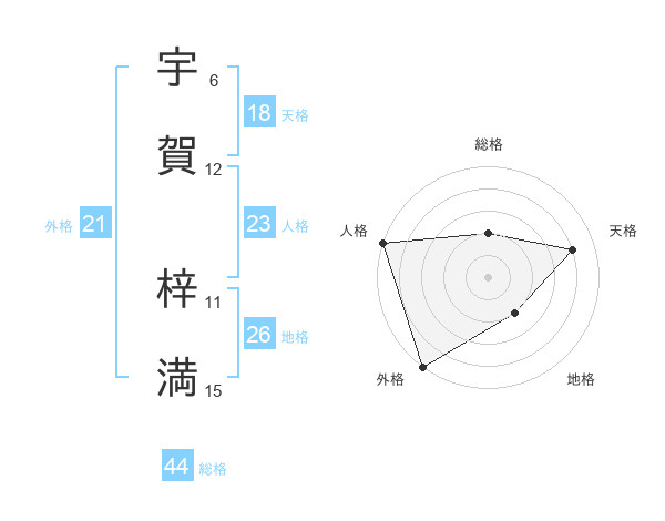 宇賀 梓満さんを姓名の画数から五運を鑑定