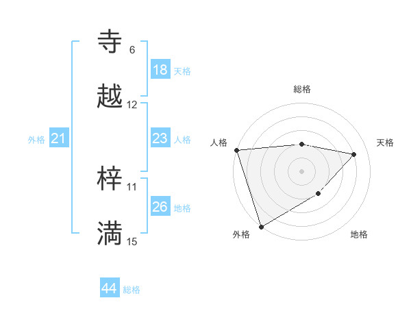 寺越 梓満さんの天格は18画の4点!