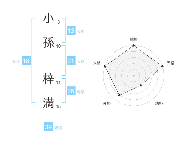 小孫 梓満さんの総格は39画の5点!