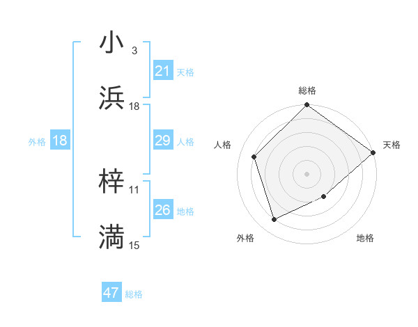 小浜 梓満さんの総格は47画の5点!