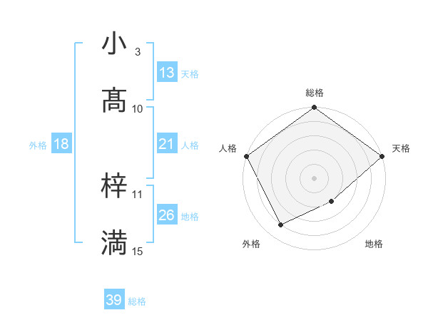 小髙 梓満さんの天格は13画の5点!