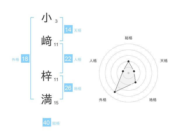 小﨑 梓満さんを姓名の画数から五運を鑑定