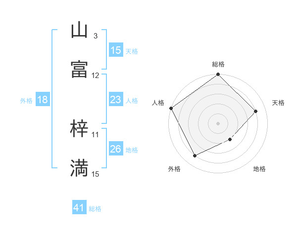 山富 梓満さんの天格は15画の4点!