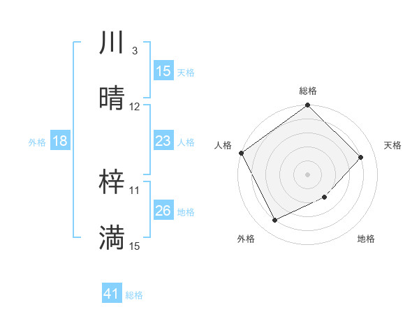 川晴 梓満さんの天格は15画の4点!