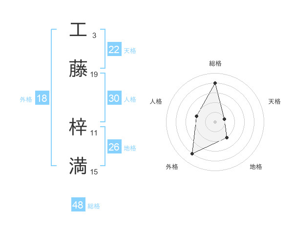 工藤 梓満さんを姓名の画数から五運を鑑定