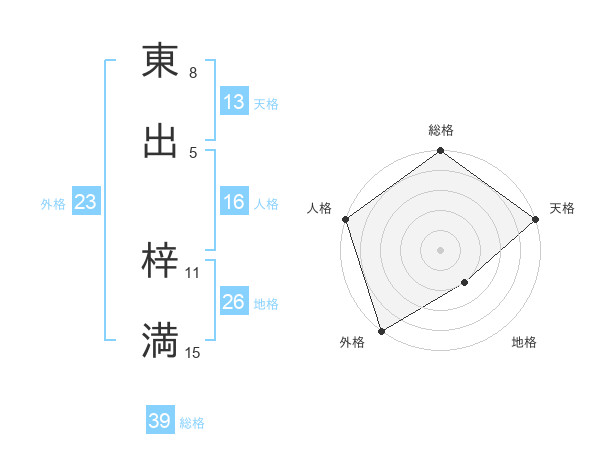 東出 梓満さんの総格は39画の5点!
