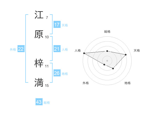 江原 梓満さんの天格は17画の4点!