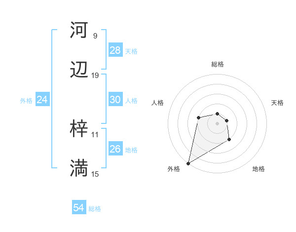 河辺 梓満さんを姓名の画数から五運を鑑定