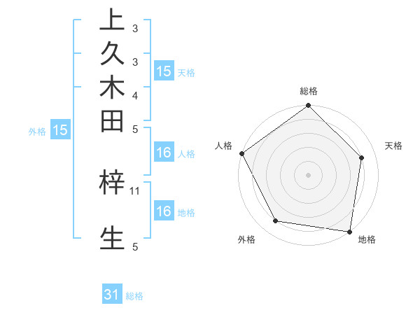 上久木田 梓生さんの総格は31画の5点!