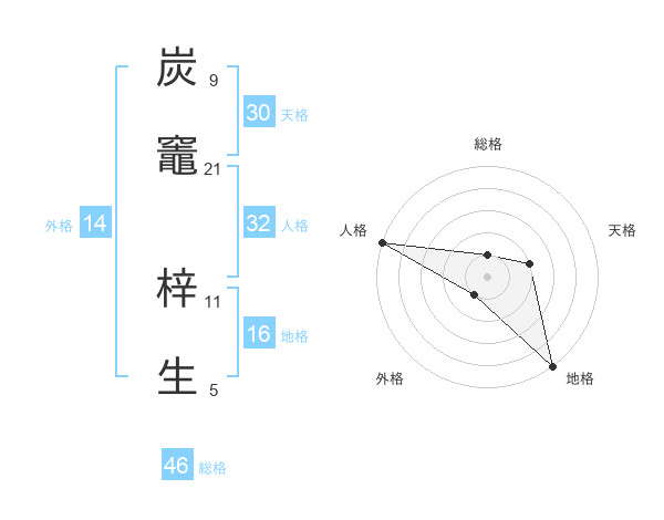 炭竈 梓生さんの総格は46画の1点!
