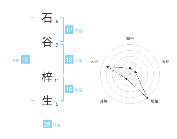 石谷 梓生さんを姓名の画数から五運を鑑定