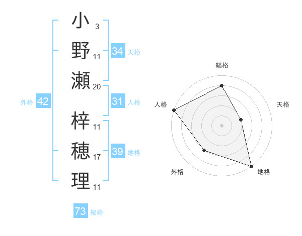 小野瀬 梓穂理さんを姓名の画数から五運を鑑定