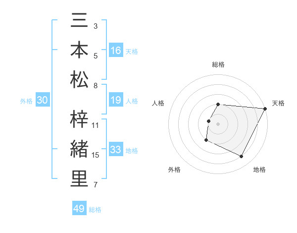 三本松 梓緒里さんを姓名の画数から五運を鑑定
