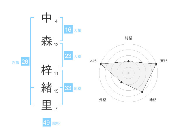 中森 梓緒里さんを姓名の画数から五運を鑑定