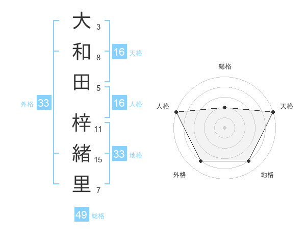 大和田 梓緒里さんを姓名の画数から五運を鑑定
