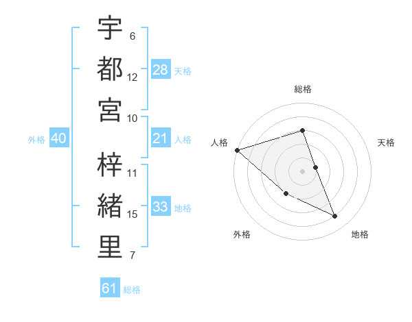 宇都宮 梓緒里さんを姓名の画数から五運を鑑定