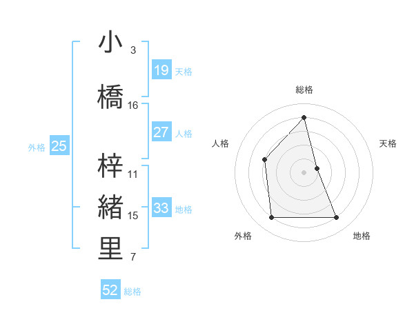 小橋 梓緒里さんを姓名の画数から五運を鑑定