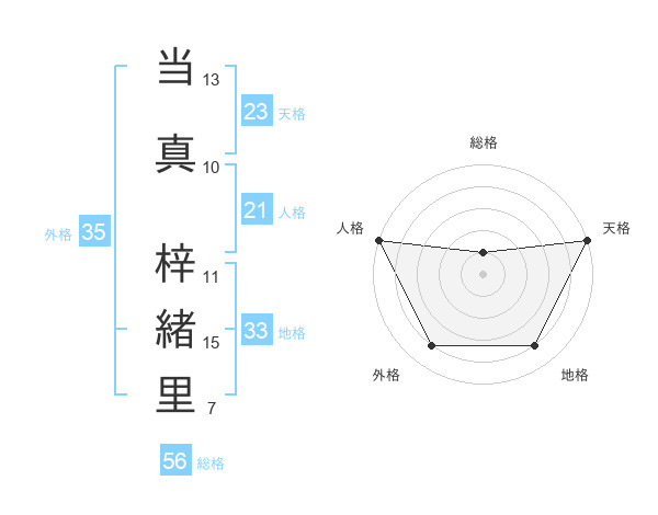 当真 梓緒里さんを姓名の画数から五運を鑑定