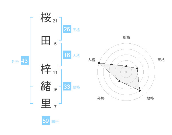 桜田 梓緒里さんを姓名の画数から五運を鑑定