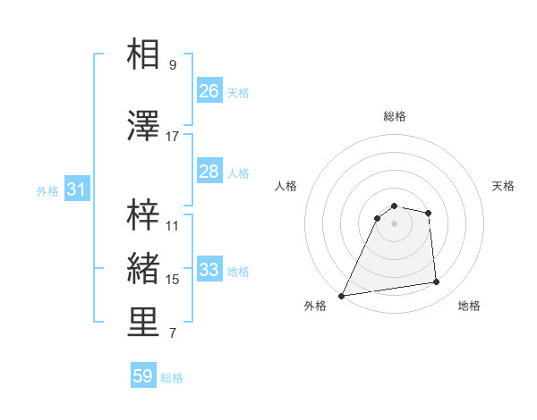 相澤 梓緒里さんを姓名の画数から五運を鑑定