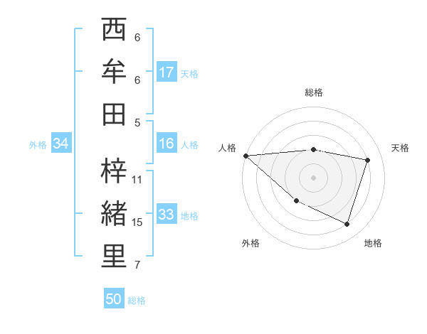 西牟田 梓緒里さんを姓名の画数から五運を鑑定
