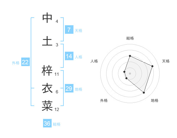 中土 梓衣菜さんを姓名の画数から五運を鑑定