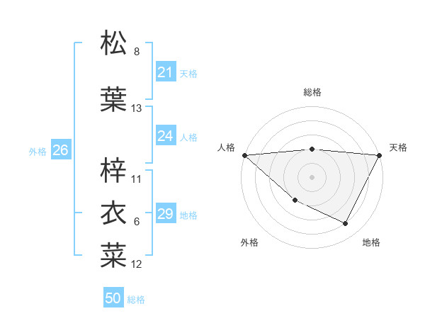 松葉 梓衣菜さんの総格は50画の2点!
