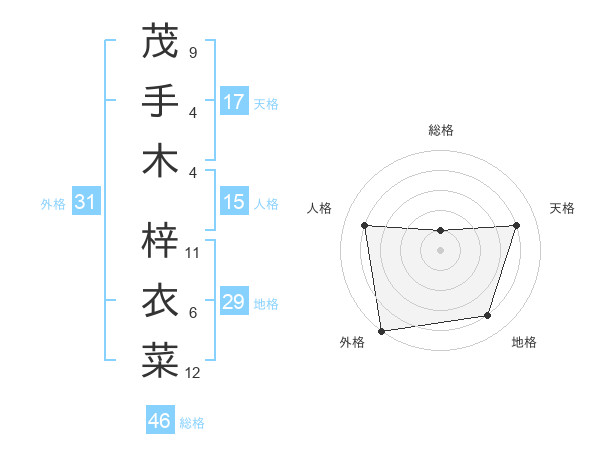 茂手木 梓衣菜さんの外格は31画の5点!