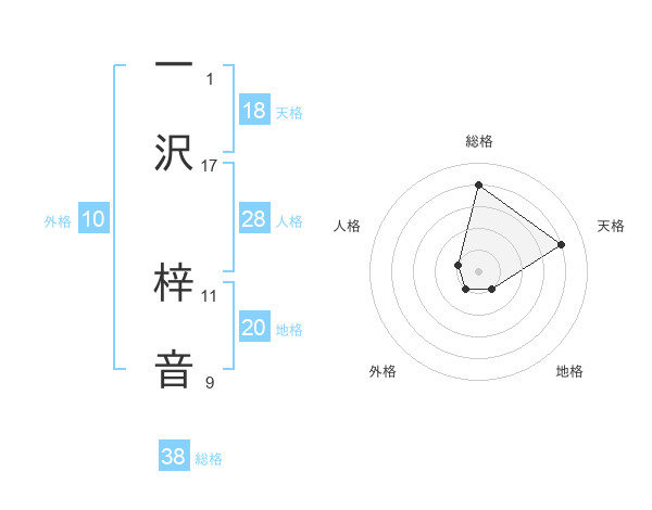 一沢 梓音さんを姓名の画数から五運を鑑定