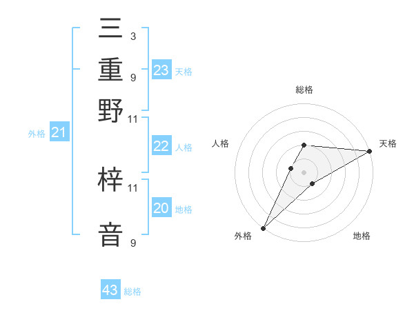 三重野 梓音さんを姓名の画数から五運を鑑定