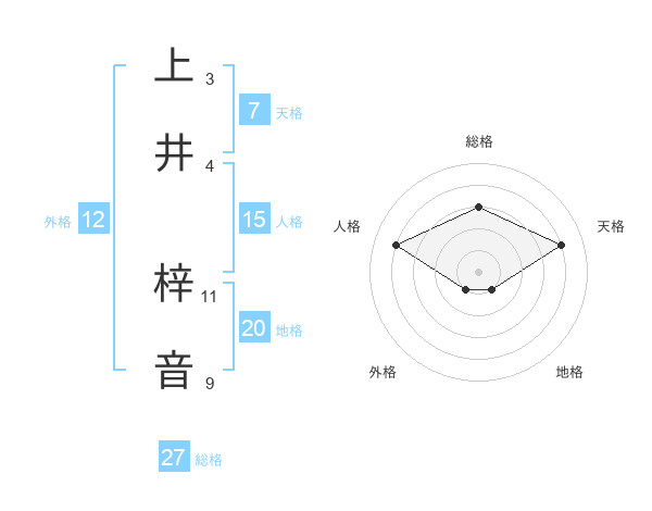 上井 梓音さんの総格は27画の3点!
