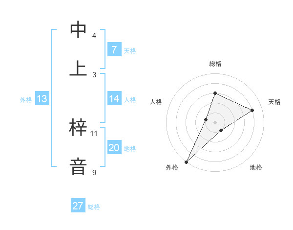 中上 梓音さんの外格は13画の5点!