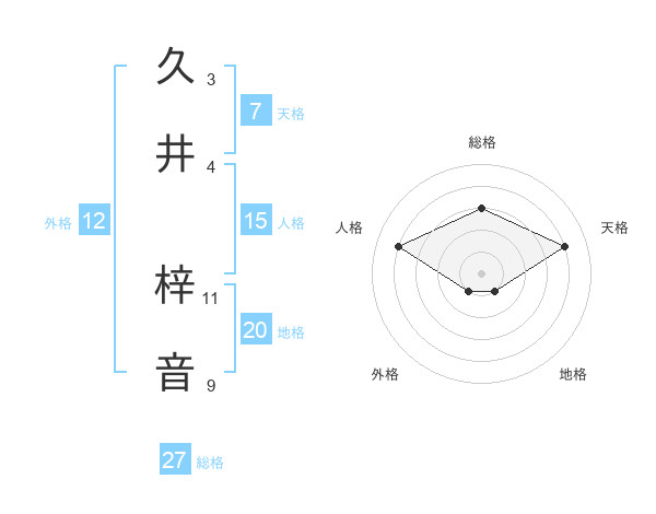 久井 梓音さんの総格は27画の3点!