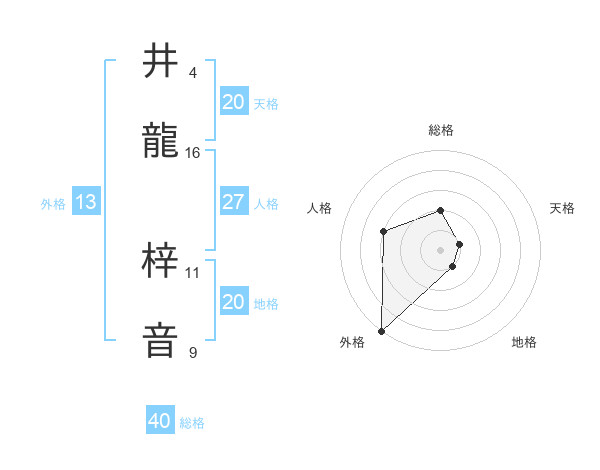 井龍 梓音さんの天格は20画の1点!
