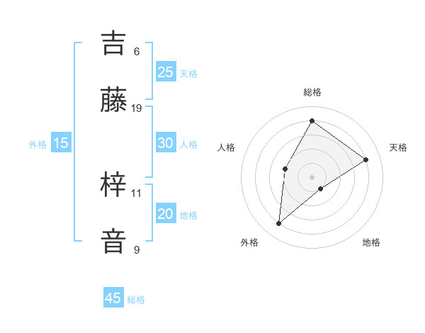 吉藤 梓音さんを姓名の画数から五運を鑑定