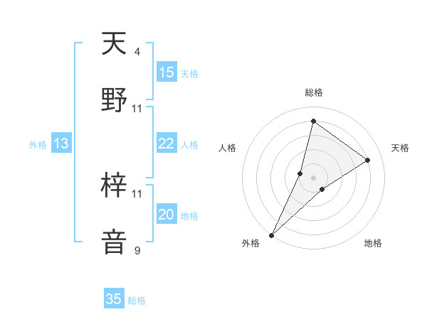天野 梓音さんの天格は15画の4点!