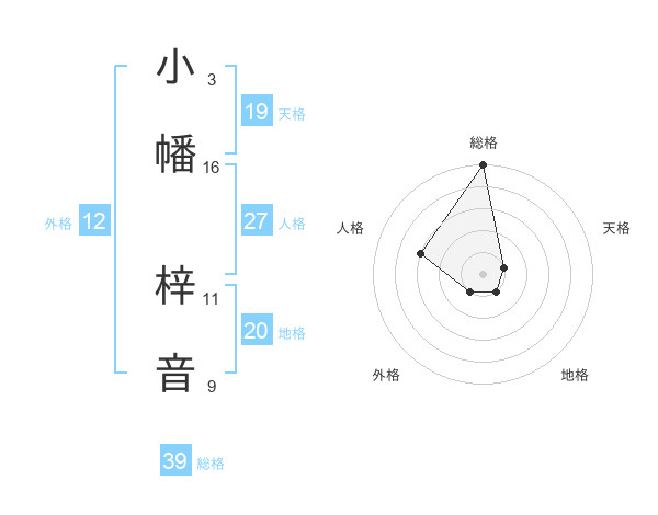 小幡 梓音さんの総格は39画の5点!