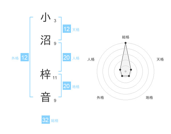 小沼 梓音さんの総格は32画の5点!