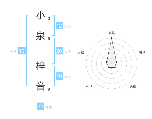 小泉 梓音さんを姓名の画数から五運を鑑定
