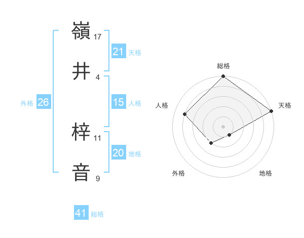 嶺井 梓音さんの天格は21画の5点!