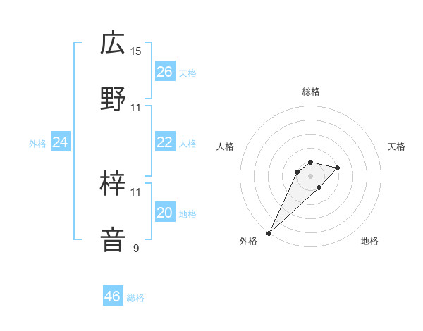 広野 梓音さんの総格は46画の1点!