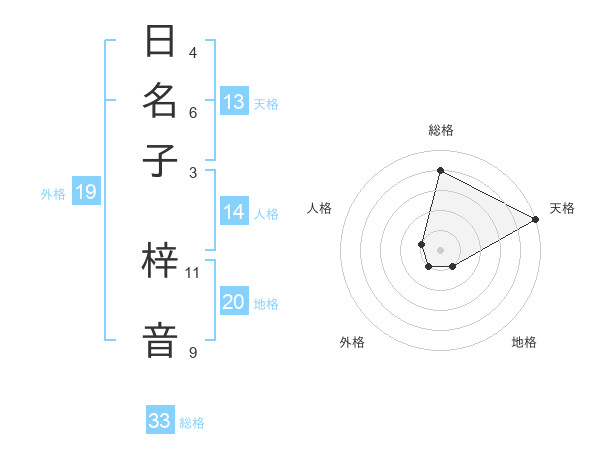 日名子 梓音さんを姓名の画数から五運を鑑定