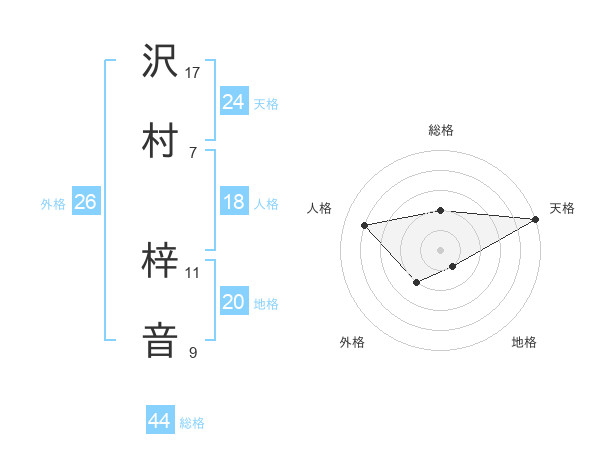 沢村 梓音さんを姓名の画数から五運を鑑定